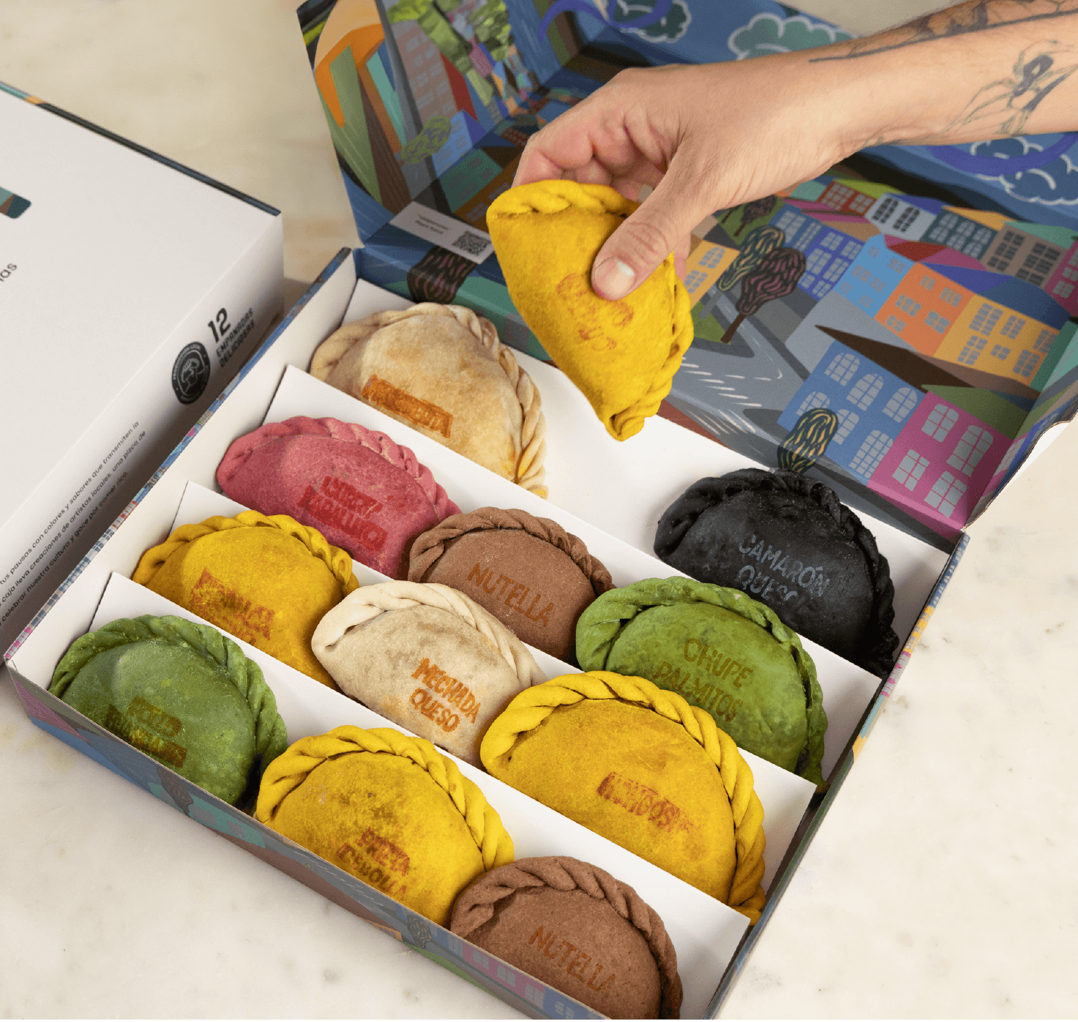 En Sama hacemos empanadas horneadas de autor, con recetas de la ganadora de Masterchef Chile, Camila Ruiz y una innovadora propuesta de masas de colores hechas con ingredientes naturales. Queremos traerle color a tu mesa con un mensaje de alegría, identidad y contraste que representa a Latinoamérica. Tenemos 12 empanadas entre dulces y saladas, inspiradas en platos clásicos latinoamericanos y con detalle de los macronutrientes de cada una (carbohidratos, grasa y proteínas). Combínalas con nuestras salsas y en su versión individual o caja de 6-12 para compartir con amigos o familia. Tenemos opciones para todos: veganas, como setas ahumadas o curry de zapallito; carnívoras, como lomo saltado o pollo a la huancaína; y vegetarianas, como el chupe de palmitos, que es una de las favoritas del público.